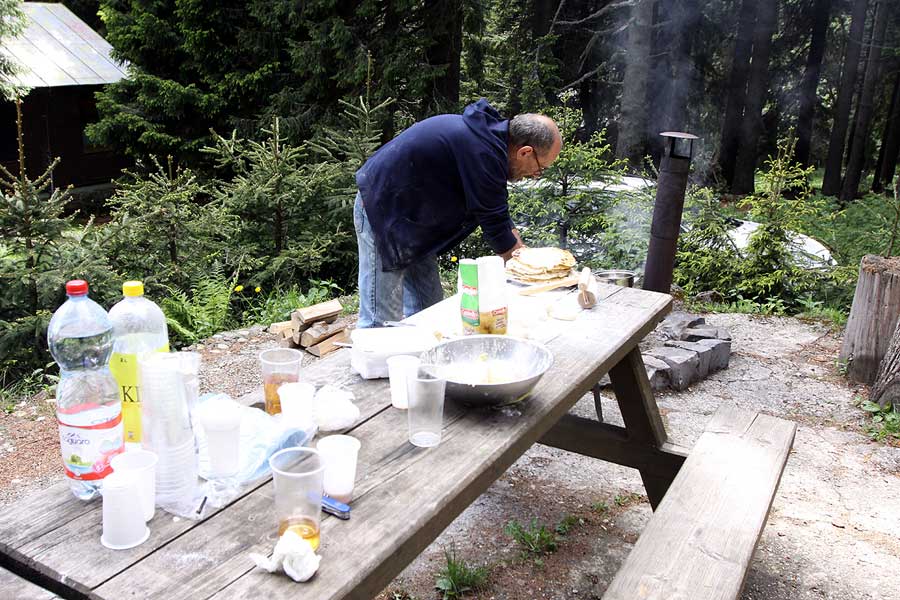Ako už býva zvykom, Paľo ako hlavný kuchár fotochát dohodol s ostatnými stravovací rozpis, kde boli na pláne jeho neskutočné lokše a vynikajúca fazuľovica. Ešte zabezpečiť pitný režim a mohli sme vyraziť.