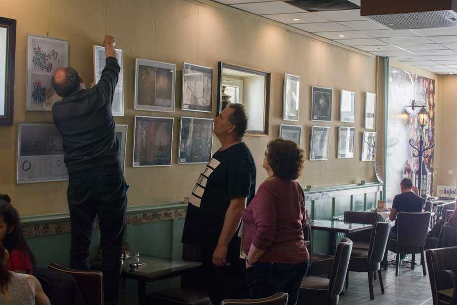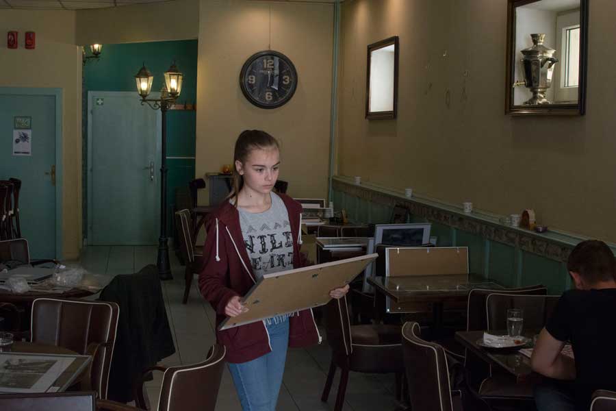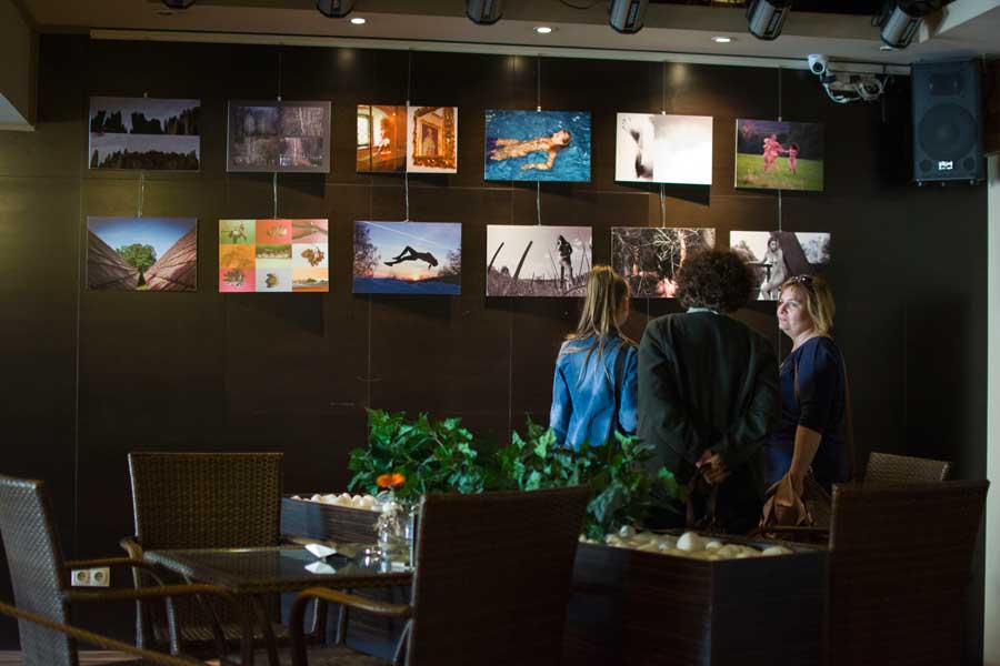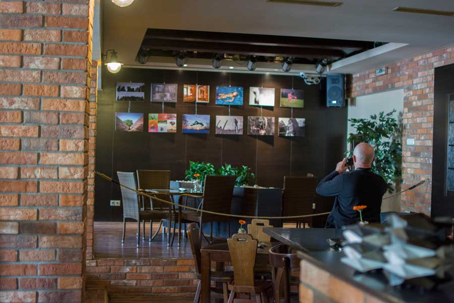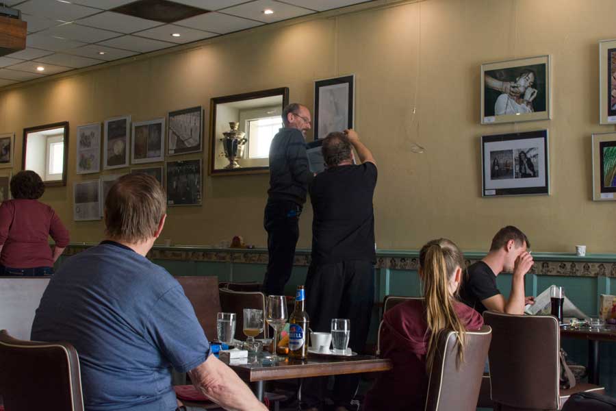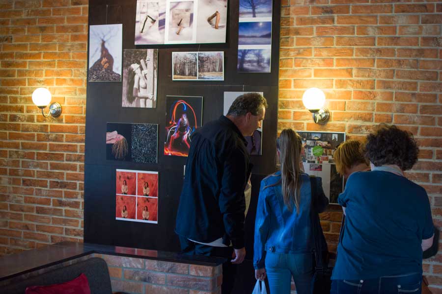 O 11.00 hod. sme už inštalovali výstavu fotoklubu v priestoroch kaviarne “Na kus reči” vo veľmi príjemnom prostredí s milým personálom a za pomoci ľudí z OZ Fotogravity. Keďže naša výstava nebola veľká a vďaka podrobným informáciám o mieste a všetkých technických záležitostiach od Marty Kosmályovej sme si vedeli urobiť prípravu už v Detve. Inštaláciu sme hlavne vďaka Paľovi (ktorý sa hneď ujal postu hlavného inštalátora, čo sme ostatní uvítali) zvládli vo veľmi krátkom čase a o 12.00 hod, sme už boli na spoločnom obede s ostatnými vystavujúcimi a s organizátormi festivalu.