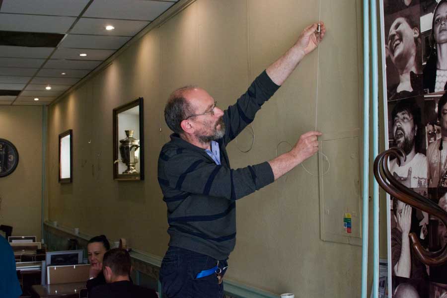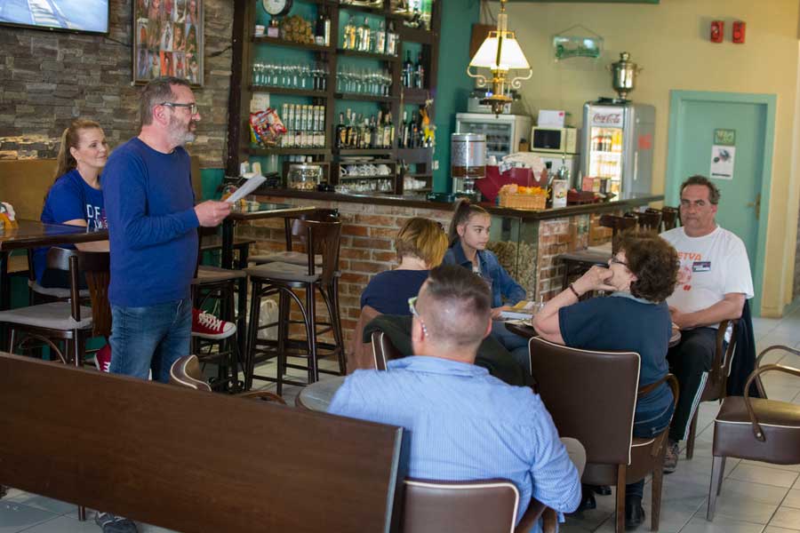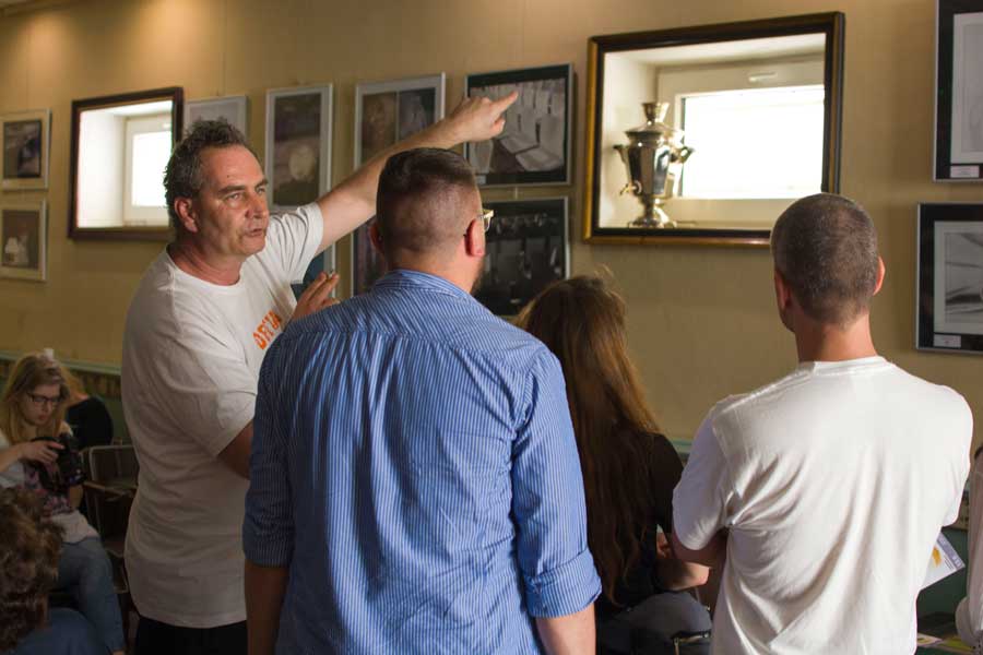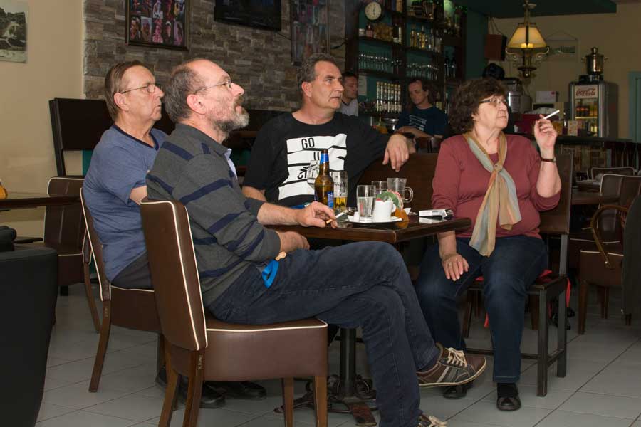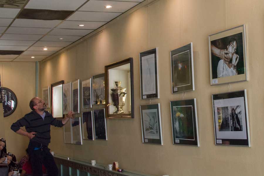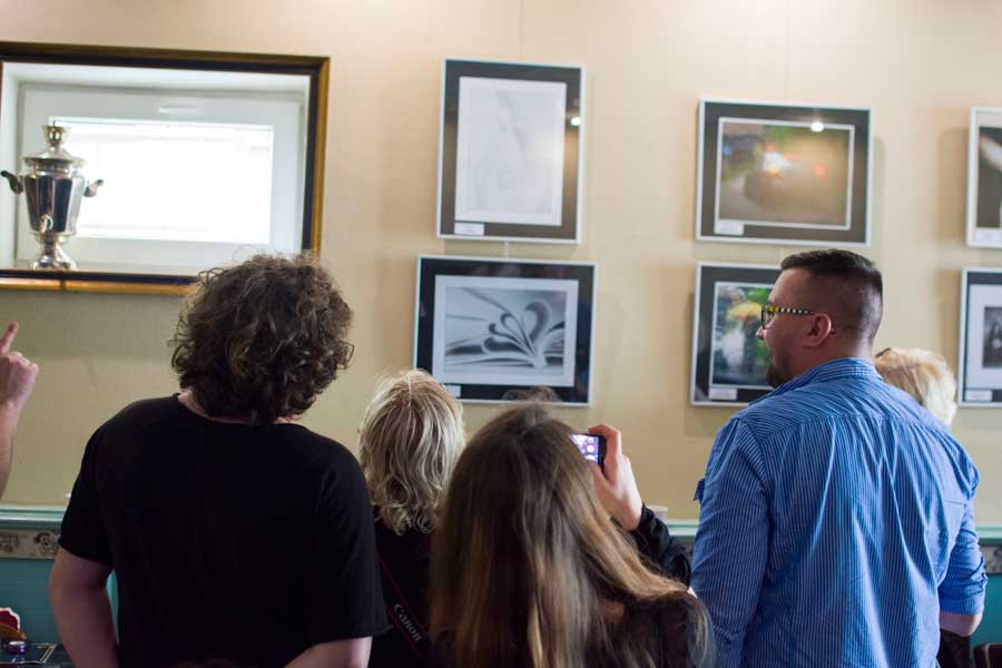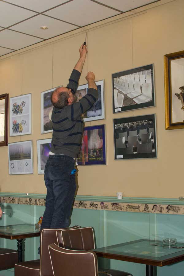 O 11.00 hod. sme už inštalovali výstavu fotoklubu v priestoroch kaviarne “Na kus reči” vo veľmi príjemnom prostredí s milým personálom a za pomoci ľudí z OZ Fotogravity. Keďže naša výstava nebola veľká a vďaka podrobným informáciám o mieste a všetkých technických záležitostiach od Marty Kosmályovej sme si vedeli urobiť prípravu už v Detve. Inštaláciu sme hlavne vďaka Paľovi (ktorý sa hneď ujal postu hlavného inštalátora, čo sme ostatní uvítali) zvládli vo veľmi krátkom čase a o 12.00 hod, sme už boli na spoločnom obede s ostatnými vystavujúcimi a s organizátormi festivalu.