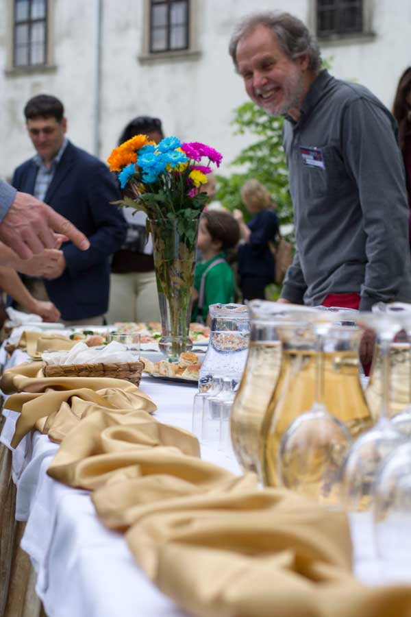 Po obede bola chvíľa na oddych a potom už nasledovalo o 15.00 hod. otvorenie výstavy nášho fotoklubu v kaviarni Na kus reči. Gabriel Kosmály zhodnotil v krátkosti obsah výstavy a tvorbu jednotlivých členov. Veľmi ma potešilo jeho vyjadrenie o fotokluboch, kde zo svojej skúsenosti uviedol, že pozná dva druhy fotoklubov: prví si robia to, čo ich baví a sú spokojní so svojimi výsledkami a druhí sa snažia zdokonaľovať a ísť neustále dopredu a skutočne tvoriť na úrovni profesionálnych fotografov. Jednoznačne zaradil náš fotoklub do tejto druhej kategórie. Nakoľko Gabriel pozná tvorbu niektorých členov už pár rokov, bol milo prekvapený ich obrovským posunom vpred.