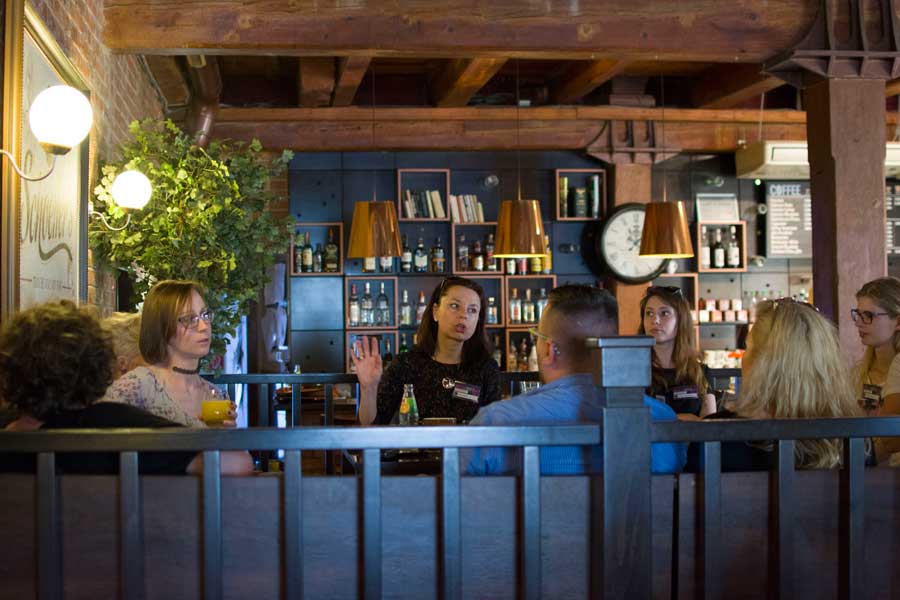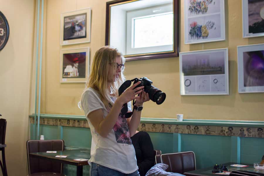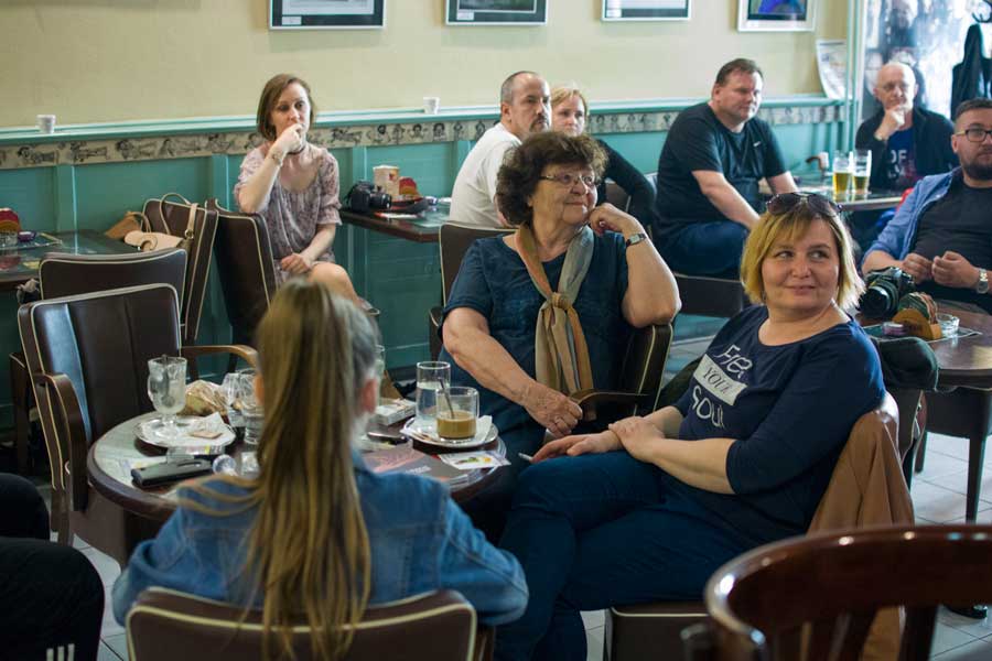 Po otvorení našej výstavy sme sa presunuli do veľmi zaujímavých priestorov kaviarne Schoellers. V týchto priestoroch sa otvárala výstava 10 rokov workshopov ROS Levice, ktorá mapuje prierez workshopmi, ktoré vznikli počas tohoto obdobia vďaka levickému ROS. Keďže sme sa na niektorých workshopoch aktívne zúčastnili, boli fotografie zároveň pripomienkou na skvelé zážitky, ktoré sme tu mohli prežiť.