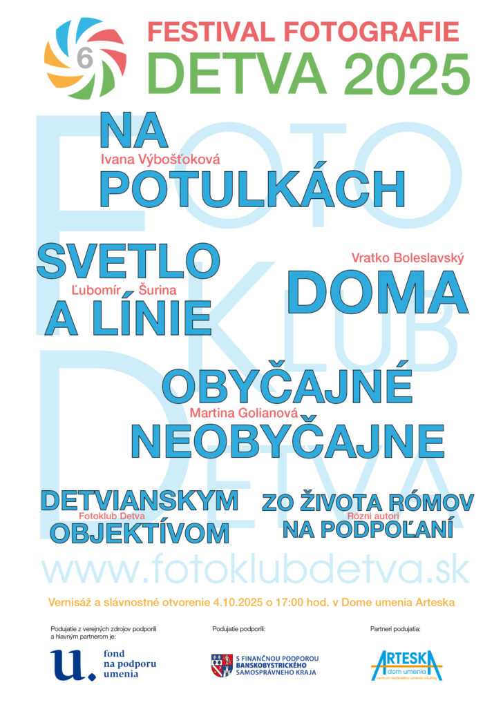 Slávnostné otvorenie festivalu bude 4. októbra 2025 o 17:00 hod. v priestoroch Domu umenia Arteska a aj tento rok bude otvorenie sprievodným podujatím Dní mesta Detva.
