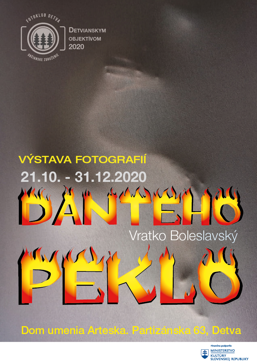Výstava Vratka Boleslavského – Danteho Peklo bude umiestnená v Dome umenia Arteska v Detve na Partizánskej 63 a navštíviť ju budete môcť od 21.10. do 31.12.2020 vždy počas otváracích hodín Domu umenia Arteska.